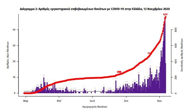 Τέλος, έχουμε 50 ακόμα καταγεγραμμένους θανάτους και 959 θανάτους συνολικά στη χώρα. 387 (40.4%) γυναίκες και οι υπόλοιποι άνδρες.
