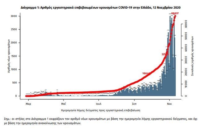 Πιο συγκεκριμένα, ανακοινώθηκαν 3.316 νέα κρούσματα του νέου ιού στη χώρα, εκ των οποίων 24 εντοπίστηκαν κατόπιν ελέγχων στις πύλες εισόδου της χώρας. Ο συνολικός αριθμός των κρουσμάτων είναι 66637, εκ των οποίων το 54.1% άνδρες.