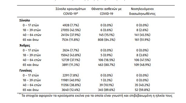 Τέλος, έχουμε 50 ακόμα καταγεγραμμένους θανάτους και 959 θανάτους συνολικά στη χώρα. 387 (40.4%) γυναίκες και οι υπόλοιποι άνδρες. Η διάμεση ηλικία των θανόντων συμπολιτών μας ήταν τα 80 έτη και το 96.9% είχε κάποιο υποκείμενο νόσημα ή/και ηλικία 70 ετών και άνω.