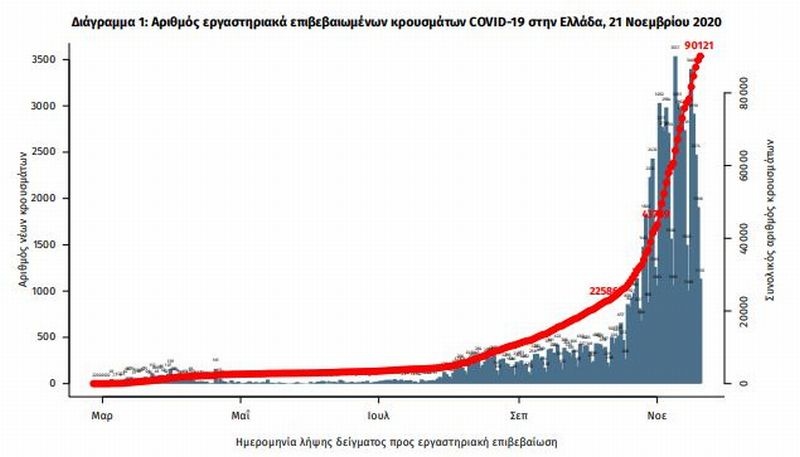 Κρούσματα σήμερα: Δεν έχει τέλος ο εφιάλτης του κορονοΪού στην Ελλάδα καθώς«σπάνε» σχεδόν καθημερινά τα αρνητικά ρεκόρ - Χθες, Σάββατο (21/11) ήταν η πρώτη φορά από την αρχή της πανδημίας που καταγράφηκε τριψήφιος αριθμός ανθρώπων που έχασα τη ζωή τους - Ολοταχώς για παράταση του lockdown πέραν της 1ης Δεκεμβρίου