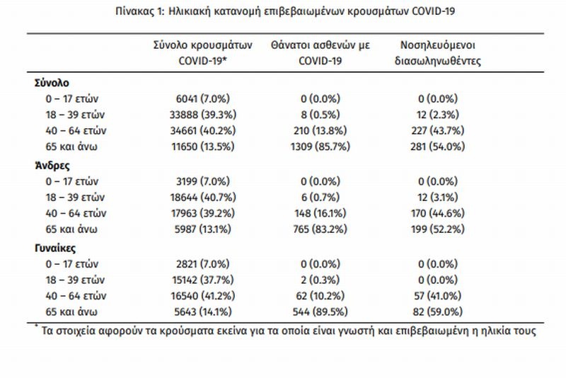 Σε ένα ακόμα «μαύρο» ρεκόρ για την Ελλάδα, ο ΕΟΔΥ ανακοίνωσε επιπλέον 108 θανάτους, με τον αριθμό των συνολικών θανάτων στη χώρα να φτάνει τους 1527. Εξ αυτών οι 608 (39.8%) είναι γυναίκες και οι υπόλοιποι άνδρες. Η διάμεση ηλικία των θανόντων ήταν τα 80 έτη και το 97.1% είχε κάποιο υποκείμενο νόσημα ή/και ηλικία 70 ετών και άνω.