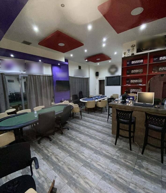 Όπως ανακοινώθηκε, κατά την αστυνομική έφοδο εντοπίστηκαν έντεκα θαμώνες να παίζουν πόκερ σε ειδικά διαμορφωμένο τραπέζι, με διαμοιρασμένα φύλλα τράπουλας και μάρκες διαφόρων αποχρώσεων που αντιστοιχούσαν συμβολικά σε διάφορα χρηματικά ποσά.