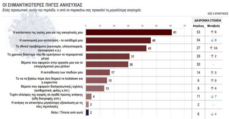 • Η ανησυχία για τον κορονοϊό ξεπερνά τους φόβους για την οικονομία και αγγίζει τα επίπεδα του Μαρτίου-Απριλίου