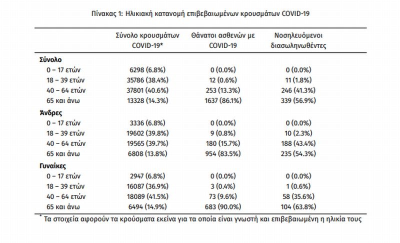 Υψηλός είναι για ακόμα μια ημέρα και ο αριθμός των θανάτων, καθώς ανακοινώθηκαν 87 επιπλέον το τελευταίο 24ωρο, ανεβάζοντας τον μακάβριο απολογισμό στους 1.902 θανάτους συνολικά στη χώρα. Οι 759 (39.9%) ήταν γυναίκες και οι υπόλοιποι άνδρες. Η διάμεση ηλικία των θανόντων ήταν τα 80 έτη και το 97.1% είχε κάποιο υποκείμενο νόσημα ή/και ηλικία 70 ετών και άνω.