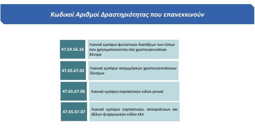 - Λιανικό εμπόριο εορταστικών ειδών γενικά με ΚΑΔ/47.65.67.06.