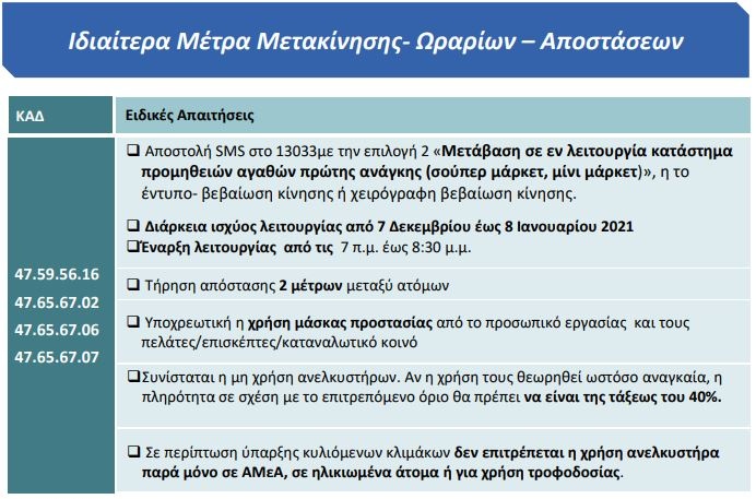 - Επιχειρήσεις που διαθέτουν τους παραπάνω ΚΑΔ ως δευτερεύοντες απαγορεύεται να πωλούν τα εν λόγω προϊόντα.