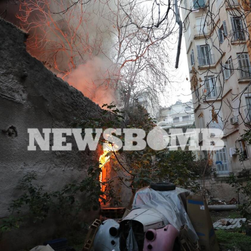 Όπως έγινε γνωστό μέσα στο σπίτι βρισκόταν ένας άστεγος ο οποίος πρόλαβε να βγει.