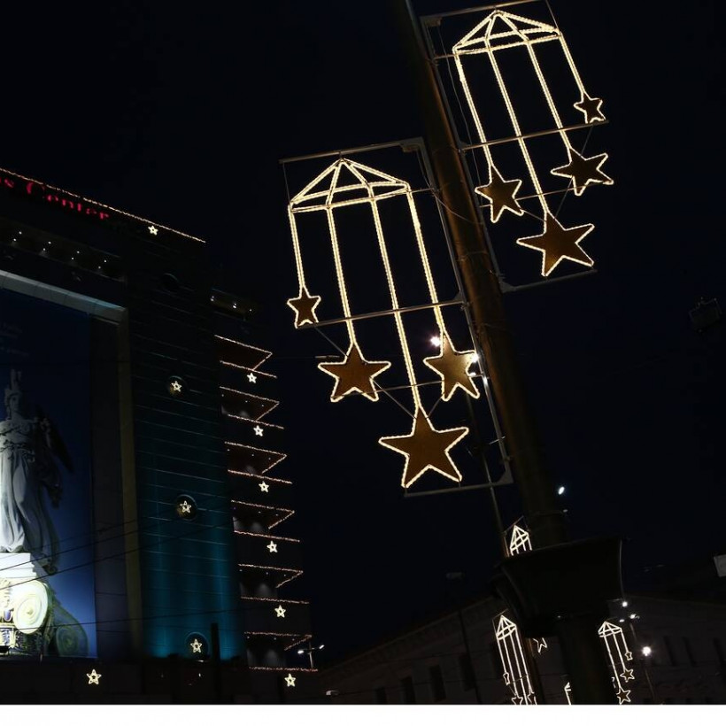 Η Ομόνοια έχει ομορφύνει ούτως ή άλλως με το εντυπωσιακό σιντριβάνι που την έχει ανεβάσει επίπεδο, όμως ο στολισμός των διπλανών κτιρίων δημιουργεί μια γιορτινή και όμορφη εικόνα.