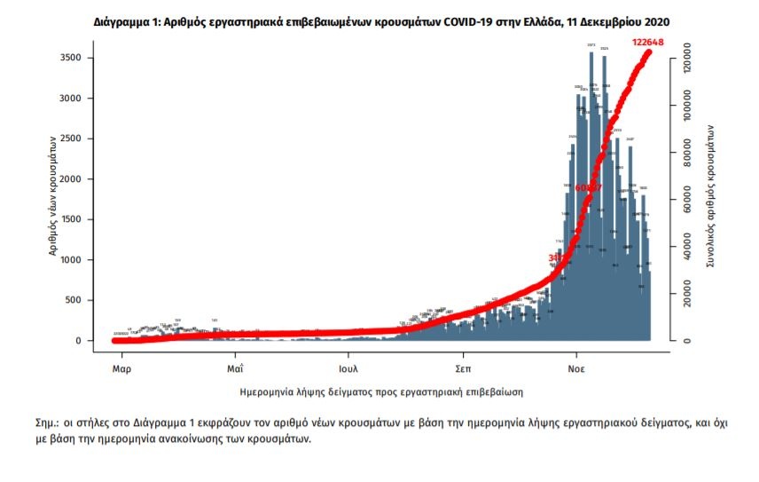 Κρούσματα σήμερα: Ο ΕΟΔΥ ανακοίνωσε για σήμερα Παρασκευή (11/12/2020) 1.395 νέα κρούσματα κορονοϊού στην Ελλάδα - Δείτε τα αναλυτικά διαγράμματα