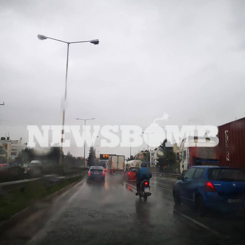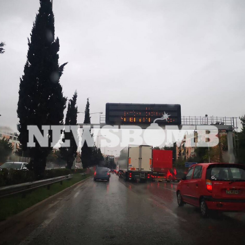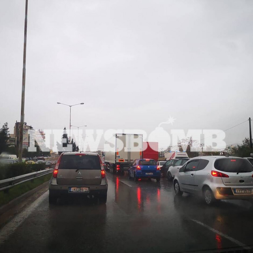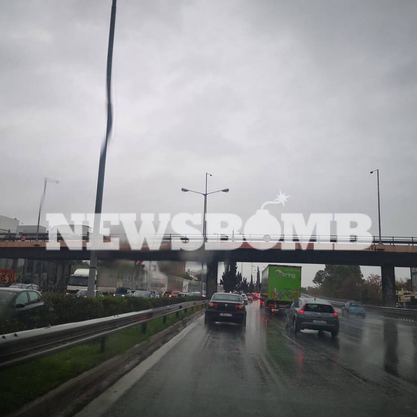Έντονη είναι η βροχόπτωση και στο Περιστέρι. Ακινητοποιημένο όχημα στον δρόμο έχει δημιουργήσει μεγάλο μποτιλιάρισμα.