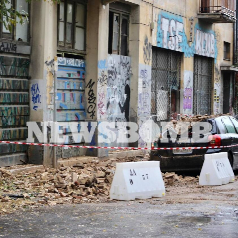 Κακοκαιρία στην Αττική: Κατέρρευσε τοίχος κτηρίου στο Μεταξουργείο