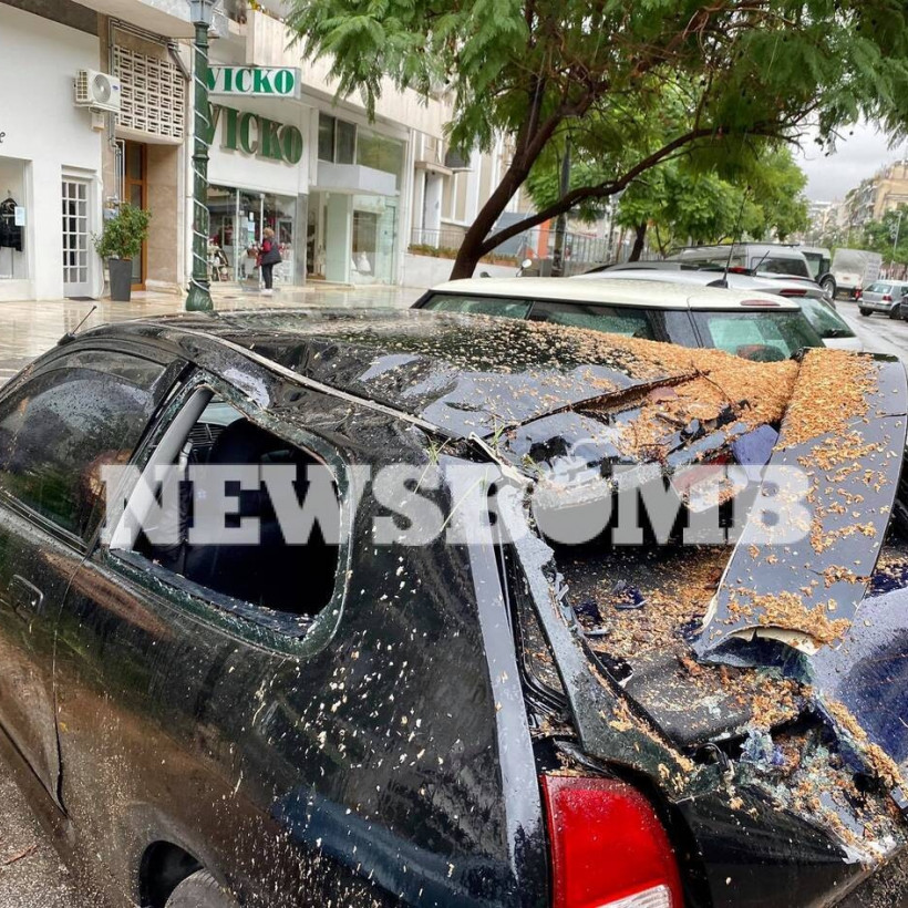 Ειδικότερα, ένα μεγάλο δέντρο έπεσε από τον αέρα και τη βροχή και καταπλάκωσε ένα αυτοκίνητο, ενώ έσπασε και ζαρντινιέρες.