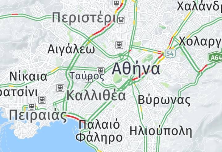 Συγκεκριμένα, η κυκλοφορία των οχημάτων από το ύψος του Άγίου Ελευθερίου έως και το ύψος των ΚΤΕΛ στον Κηφισό πραγματοποιείται με πολύ αργούς ρυθμούς.