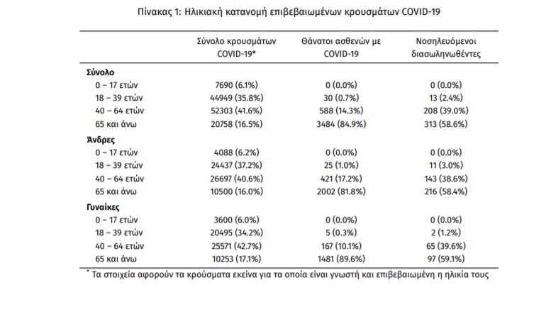 Η ηλικιακή κατανομή των (α) συνολικών κρουσμάτων, (β) των περιστατικών που κατέληξαν σε θάνατο και (γ) των ασθενών που νοσηλεύονται διασωληνωμένοι, είναι η ακόλουθη: