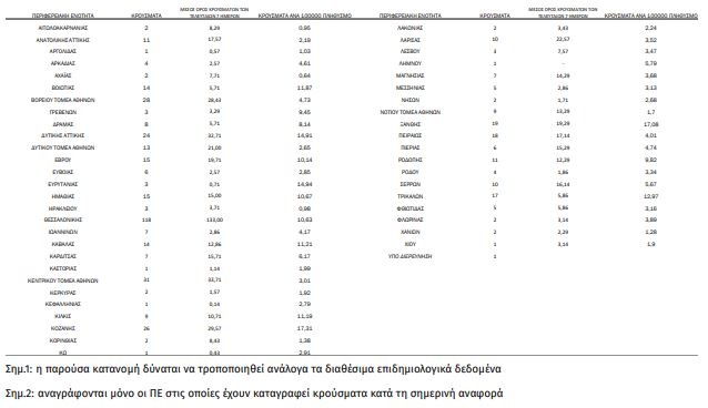 Συμπεριλαμβάνονται τόσο κρούσματα με ιστορικό ταξιδίου (εισαγόμενα) όσο και κρούσματα με πιθανή εγχώρια μετάδοση.