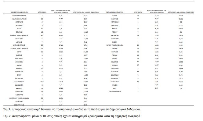 42 κρούσματα στην ΠΕ Πειραιώς - 212 κρούσματα στην Π.Ε. Θεσσαλονίκης