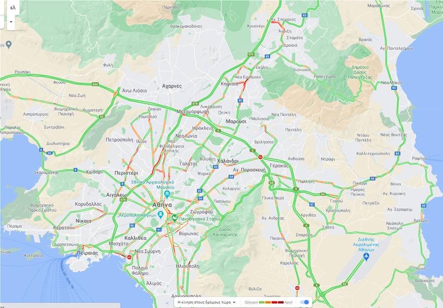 Το μποτιλιάρισμα είναι δεδομένο στις περισσότερες λεωφόρους και στον Κηφισό, ενώ και στο κέντρο υπάρχει μεγάλη κινητικότητα και η ροή των οχημάτων γίνεται με μεγάλη δυσκολία.