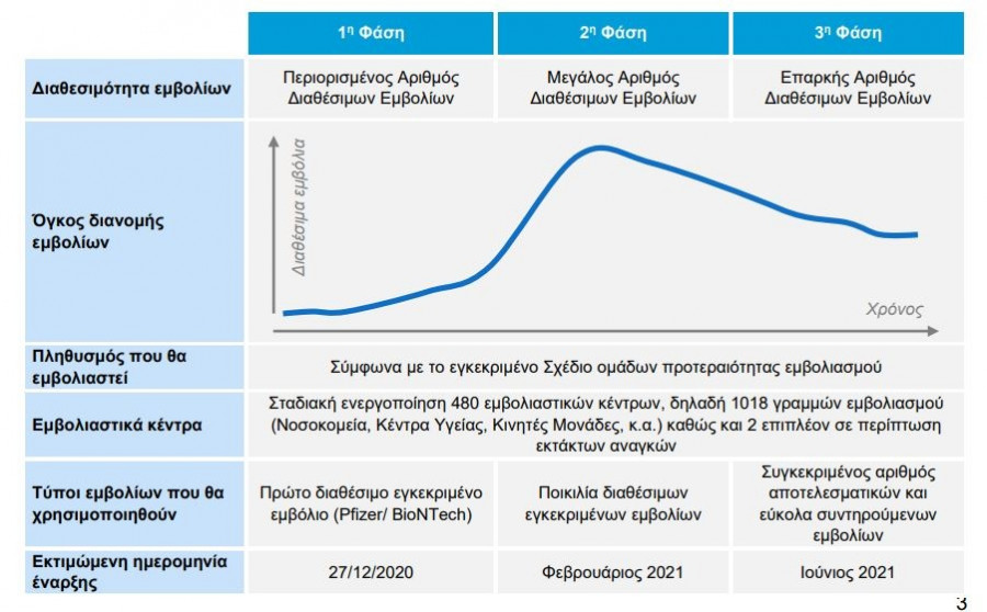 Σε 18 σελίδες περιγράφεται ποιοι θα εμβολιαστούν, πώς θα γίνεται η μεταφορά και αποθήκευση των εμβολίων, πόσα εμβόλια και από ποιες εταιρείες περιμένει η Ελλάδα καθώς και πώς θα κλείνονται τα ραντεβού.