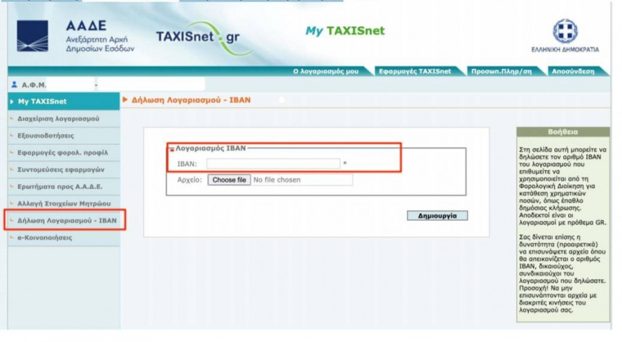 Για την δήλωση IBAN στο TAXISnet επιλέγετε Δήλωση Λογαριασμού – IBAN