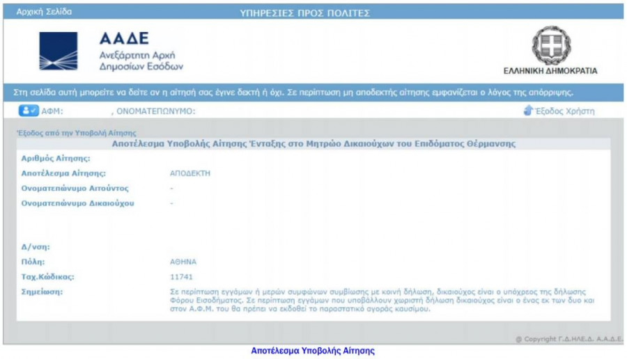 Έως και τις 11 Ιανουαρίου αναμένεται να παραμείνει ανοικτή η πλατφόρμα της ΑΑΔΕ, για το επίδομα θέρμανσης.