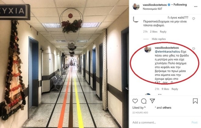 «Πρωί μπήκαμε....βράδυ βγήκαμε...! Θα ‘χω να τις θυμάμαι αυτές τις γιορτές έτσι και αλλιώς.... Έζησα και είδα αρκετά.. αυτές τις μέρες! Ευχαριστώ τον “κόσμο μου” & “όλο τον κόσμο” μου που με στήριξε και με στηρίζει...ψυχολογικά αυτές αλλά και “όλες τις στιγμές” με ανιδιοτελείς ευχές γεμάτες καλοσύνη και θετική αύρα! Και γω από την πλευρά μου θα είμαι πάντα νοερά δίπλα τους στέλνοντας όλη την Αγάπη μου και τις ευχές μου να είστε καλά! Μέσα από την ψυχή μου!», έγραψε χαρακτηριστικά στο δεύτερο μήνυμά του και στα σχόλια είδαμε πως ο λόγος που βρέθηκε στο νοσοκομείο ήταν ότι η μητέρα του έπεσε και χτύπησε το κεφάλι της.