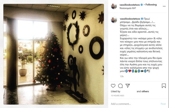 Στο νοσοκομείο πέρασε τα Χριστούγεννα ο Βασίλειος Κωστέτσος, όπως αποκάλυψε ο ίδιος μέσω δύο αναρτήσεών του στο Instagram.