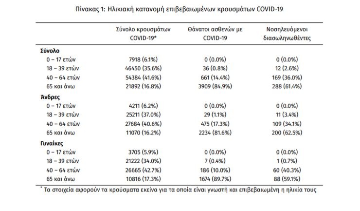Οι νέοι θάνατοι ασθενών με COVID-19 είναι 53, ενώ από την έναρξη της επιδημίας έχουν καταγραφεί συνολικά 4.606 θάνατοι. Η διάμεση ηλικία των ασθενών που απεβίωσαν είναι 79 έτη.