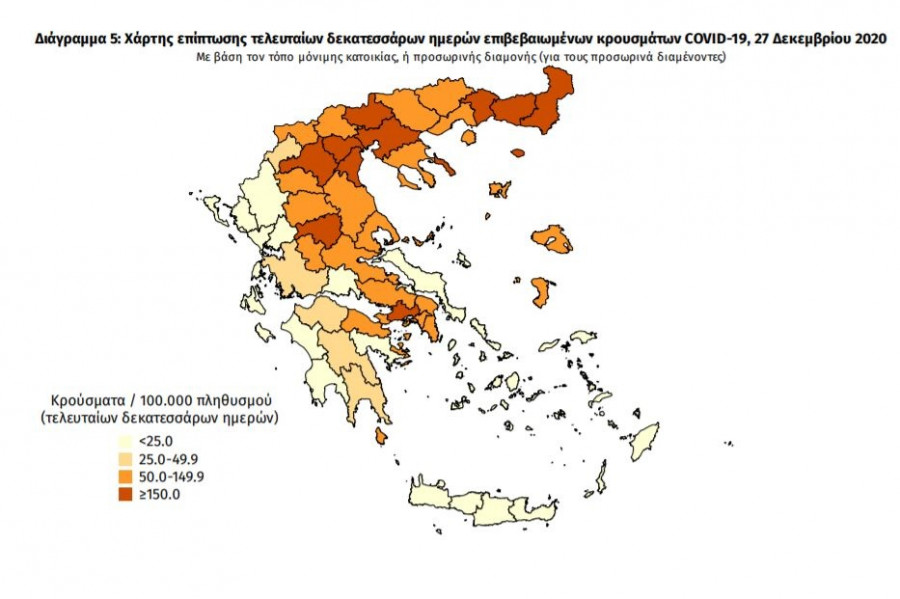Κρούσματα σήμερα: Η πορεία της πανδημίας του κορονοϊού στη χώρα μας, σύμφωνα με τις επίσημες ανακοινώσεις του ΕΟΔΥ την Κυριακή 27/12.