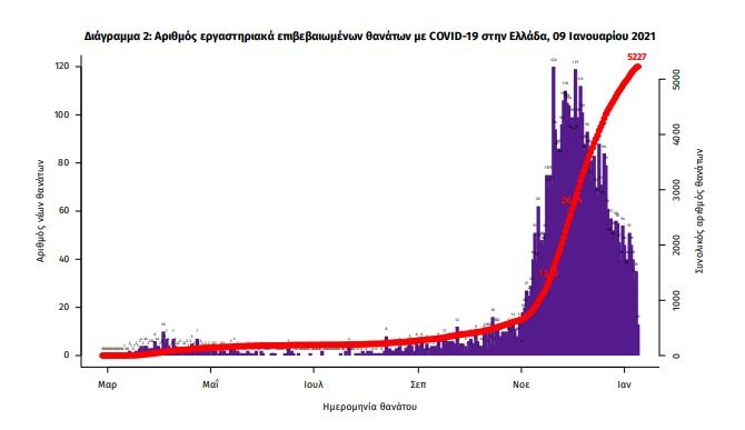 Οι νέοι θάνατοι ασθενών με COVID-19 είναι 32, ενώ από την έναρξη της επιδημίας έχουν καταγραφεί συνολικά 5.227 θάνατοι. Η διάμεση ηλικία των ασθενών που απεβίωσαν είναι 79 έτη.
