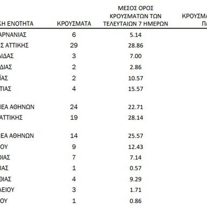 Από το σύνολο των 445 νέων κρουσμάτων του νέου ιού στη χώρα 18 είναι εισαγόμενα και 12 εντοπίστηκαν κατόπιν ελέγχων στις πύλες εισόδου της χώρας. Η κατανομή των 427 νέων εγχώριων κρουσμάτων ανά Περιφερειακή Ενότητα παρουσιάζεται στον κατωτέρω πίνακα.