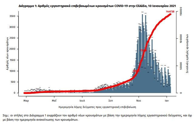 Δείγματα που έχουν ελεγχθεί: Από την 1η Ιανουαρίου 2020 μέχρι σήμερα, στα εργαστήρια που διενεργούν ελέγχους για τον νέο κορoνοϊό (SARS-CoV-2) και που δηλώνουν συστηματικά στον ΕΟΔΥ το σύνολο των δειγμάτων που ελέγχουν, έχουν συνολικά ελεγχθεί 2.891.190 κλινικά δείγματα ενώ από Μονάδες Υγείας και Κλιμάκια του ΕΟΔΥ που διενεργούν ελέγχους Rapid Ag έχουν ελεγχθεί 705.349 δείγματα.