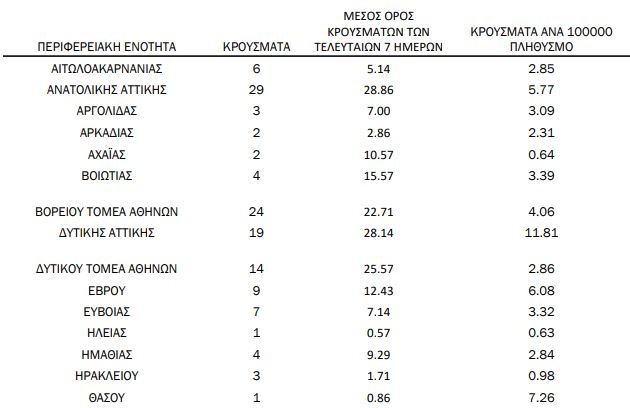 - 29 κρούσματα στην ΠΕ Ανατολικής Αττικής