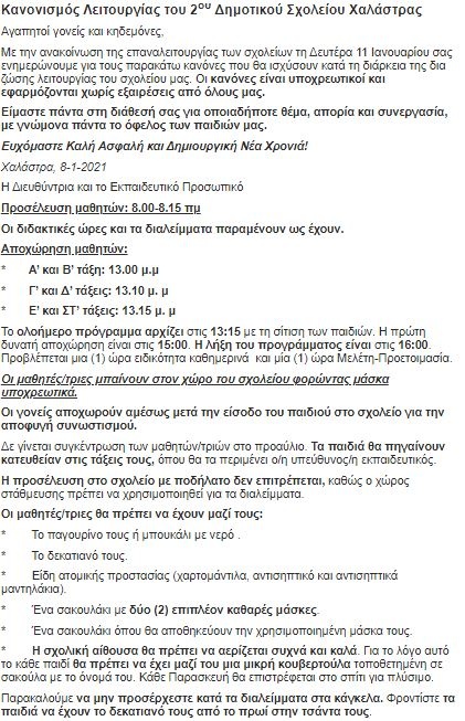 Μεταξύ άλλων, η ανακοίνωση του 2ου Δημοτικού Σχολείου Χαλάστρας αναφέρει: