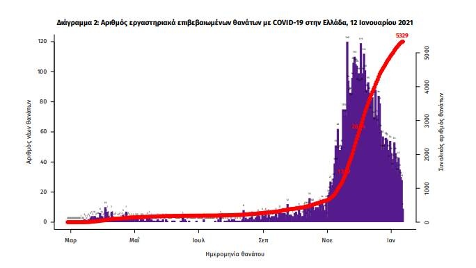 Τέλος, έχουμε 27 νέους θανάτους από τη νόσο COVID-19, φθάνοντας τους 5329 θανάτους συνολικά στη χώρα, εκ των οποίων 3149 (59.1%) άνδρες. Η διάμεση ηλικία των θανόντων συμπολιτών μας ήταν τα 79 έτη και το 95.5% είχε κάποιο υποκείμενο νόσημα ή/και ηλικία 70 ετών και άνω.