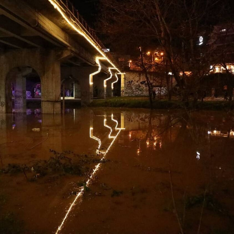 Νυχτερινές εικόνες από τον Πηνειό – Στο όριο της υπερχείλισης η στάθμη του νερού