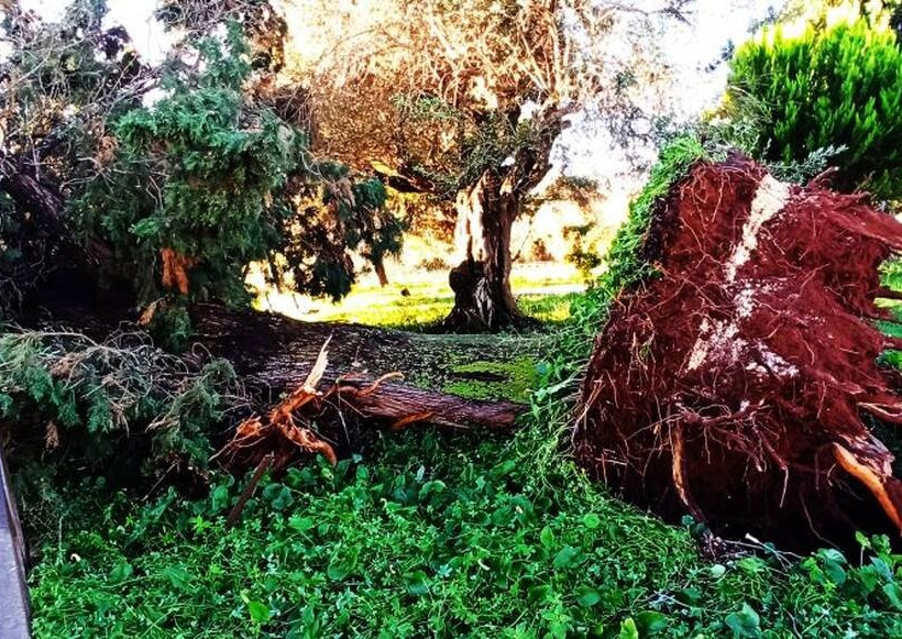 Η μανία του αέρα ξήλωσε θερμοκήπια, προκάλεσε ζημιές σε ηλιακούς θερμοσίφωνες, γκρέμισε περιφράξεις, ξήλωσε λαμαρίνες από αποθήκες και στέγες, ενώ κατάφερε να ξεριζώσει ακόμα και ένα πανύψηλο κυπαρίσσι στο μνημείο της Παργινόσκαλας.