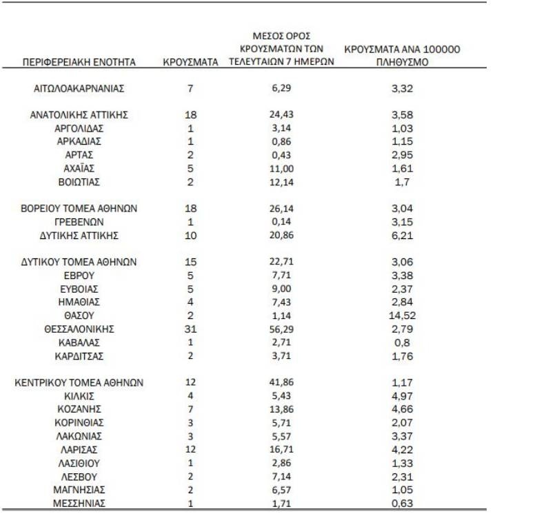 - 12 κρούσματα στην ΠΕ Κεντρικού Τομέα Αθηνών