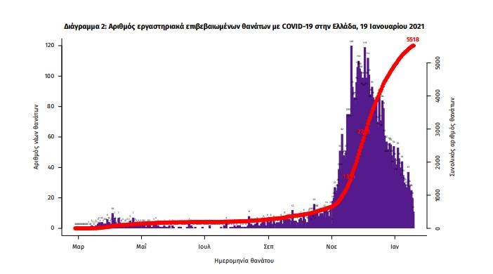 Τέλος, έχουμε 30 νέους θανάτους από τη νόσο COVID-19, φθάνοντας τους 5.518 θανάτους συνολικά στη χώρα, εκ των οποίων 3254 (59.0%) άνδρες. Η διάμεση ηλικία των θανόντων συμπολιτών μας ήταν τα 79 έτη και το 95.4% είχε κάποιο υποκείμενο νόσημα ή/και ηλικία 70 ετών και άνω.