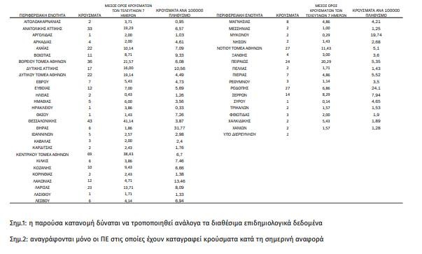 Κρούσματα ανά 100.000 πληθυσμού