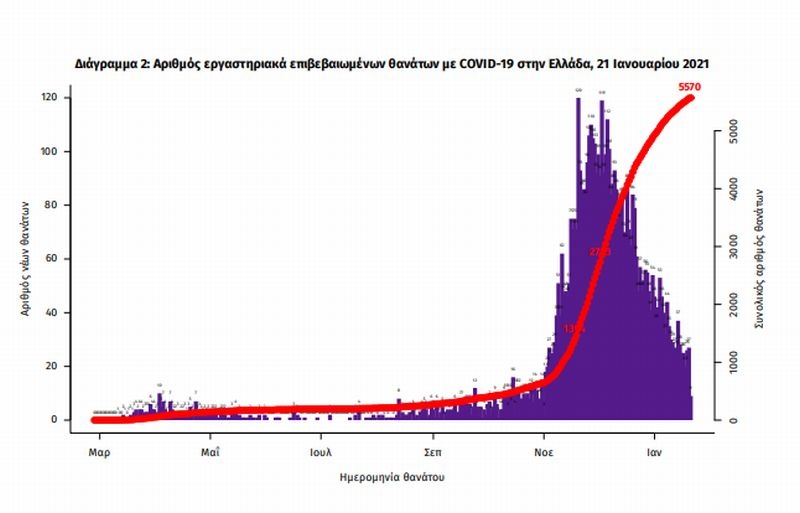 Τέλος, ο ΕΟΔΥ ανακοίνωσε 25 νέους θανάτους από τη νόσο COVID-19, φθάνοντας τους 5.570 θανάτους συνολικά στη χώρα, εκ των οποίων 3.286 (59.0%) άνδρες. Η διάμεση ηλικία των θανόντων συμπολιτών μας ήταν τα 79 έτη και το 95.4% είχε κάποιο υποκείμενο νόσημα ή/και ηλικία 70 ετών και άνω.