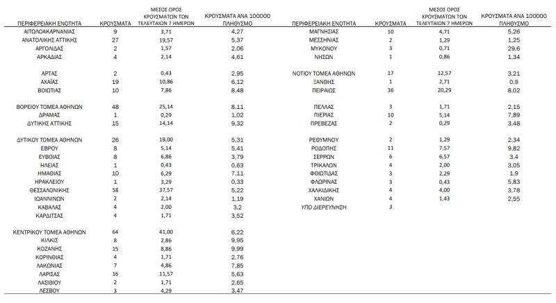 Συμπεριλαμβάνονται τόσο κρούσματα με ιστορικό ταξιδίου («εισαγόμενα») όσο και κρούσματα με πιθανή εγχώρια μετάδοση.
