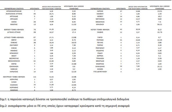 Συμπεριλαμβάνονται τόσο κρούσματα με ιστορικό ταξιδίου (εισαγόμενα) όσο και κρούσματα με πιθανή εγχώρια μετάδοση.