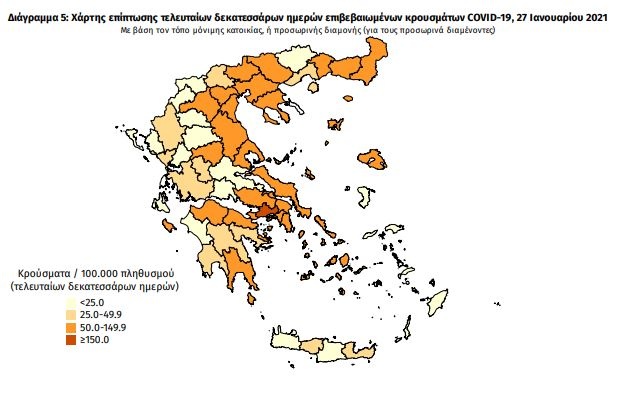 Κρούσματα σήμερα: Πού καταγράφονται τα νέα κρούσματα, που ανακοίνωσε ο ΕΟΔΥ την Τετάρτη 27/01. Ανησυχία για την Αττική αλλά και τις περιοχές που έχουν αυξημένο τον δείκτη των κρουσμάτων ανά 100.000 πληθυσμού.