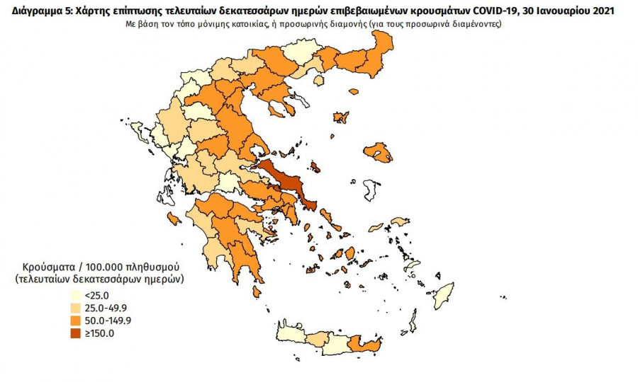 Τα κρούσματα ανά 100.000 πληθυσμού