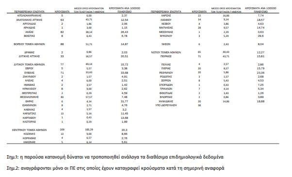 Τα κρούσματα ανά Περιφερειακή Ενότητα