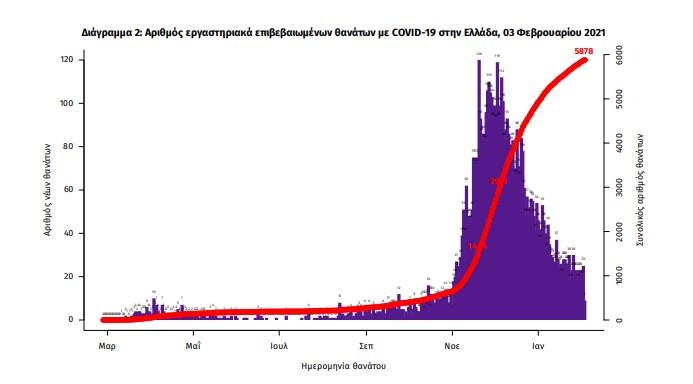 Τέλος, έχουμε 27 νέους θανάτους από τη νόσο COVID-19, φθάνοντας τους 5.878 θανάτους συνολικά στη χώρα, εκ των οποίων 3.457 (58.8%) άνδρες. Η διάμεση ηλικία των θανόντων συμπολιτών μας ήταν τα 79 έτη και το 95.5% είχε κάποιο υποκείμενο νόσημα ή/και ηλικία 70 ετών και άνω.
