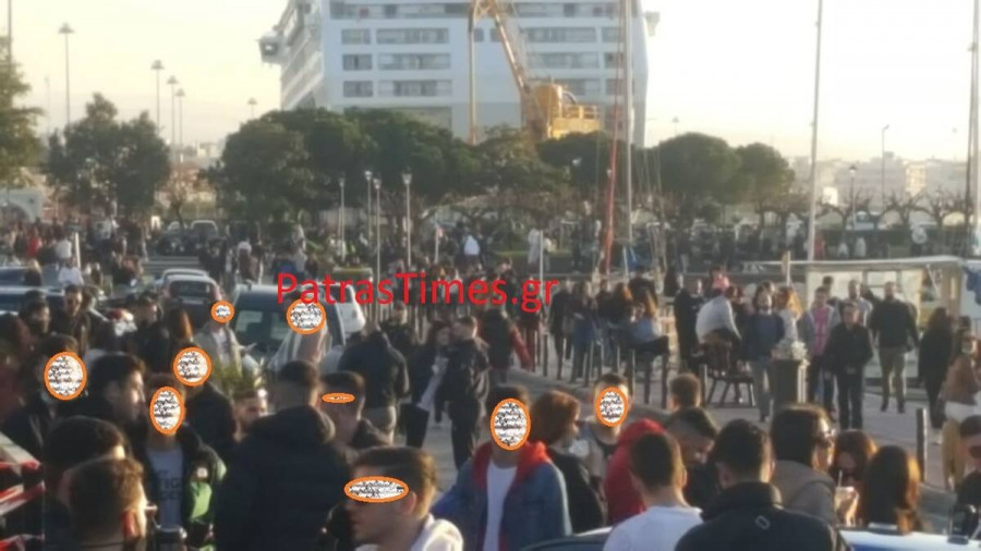 Απίστευτες εικόνες κατέγραψε ο φακός του patrastimes.gr στο θεατράκι της Μαρίνας στην Πάτρα και στην Ηρώων Πολυτεχνείου, όπου μισή ώρα πριν τεθεί σε ισχύ η απαγόρευση της κυκλοφορίας το απόγευμα του Σαββάτου εκατοντάδες άτομα συναθροίστηκαν – τα περισσότερα χωρίς μάσκα – αδιαφορώντας για την προστασία της δημόσιας υγείας.
