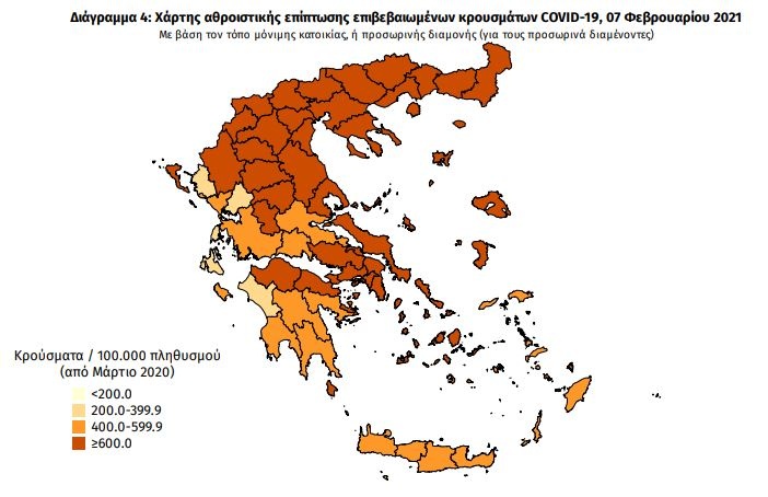 Κορονοϊός - Όλες οι ειδήσεις: Την Κυριακή, 7 Φεβρουαρίου 2021, ο ΕΟΔΥ ανακοίνωσε 733 νέα κρούσματα του νέου ιού στη χώρα, εκ των οποίων τα 8 εντοπίστηκαν κατόπιν ελέγχων στις πύλες εισόδου της χώρας.