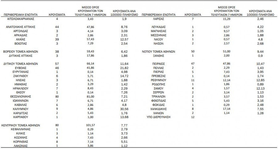 Τα κρούσματα ανά Περιφερειακή Ενότητα