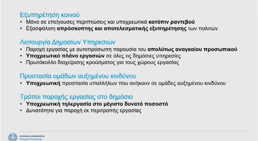 Τι προβλέπεται για την λειτουργία του Δημοσίου τομέα σύμφωνα με την εξειδίκευση των μέτρων